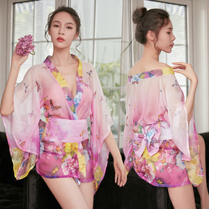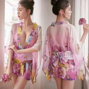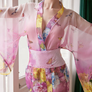 Elevate your lingerie collection with this chic and feminine chiffon kimono set!