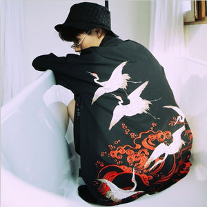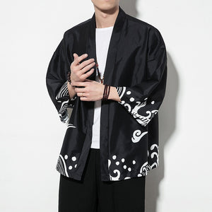 This Zen-inspired cardigan shirt combines comfort with a distinctive animal print pattern, perfect for creating a relaxed and stylish look. The loose fit and stand-up collar provide a unique blend of traditional Chinese style with modern influences.