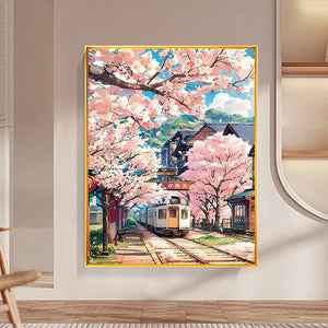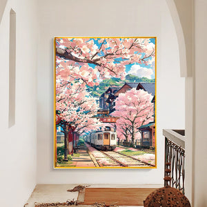 Create your own masterpiece with this elegant and calming diamond painting kit, featuring a dreamy Sakura landscape set in a serene station scene.